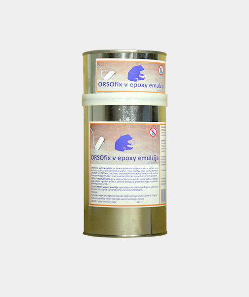 ORSOfix V epoxy emulzija je dvokomponentna vodena disperzija na bazi epoxy smola koja služi kao vezivno sredstvo za stare i nove podloge ili kao dodatak mortovim ORSOSAN 02 i ORSOSAN 04 za izradu trokomponentnih epoxy reparaturnih mortova. Visoko penetrira u strukturu te se moze koristiti u kombinaciji sa